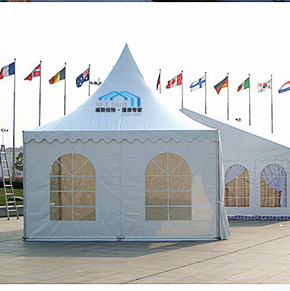WT can supply 3m , 4m, 5m, 6m, 7m, 8m and 10m square Pagoda Tent. And 3x6m,4x8m,5x10m rectangle pagoda tent,we can also provide internal decorative accessories, such as lining, floor system, etc.